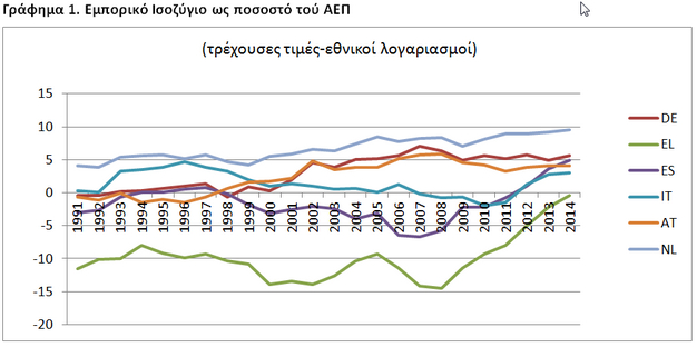 Με βάση τα παραπάνω, προκύπτει το ερώτημα: Τελικά η ΟΝΕ ήταν μια «κακή ιδέα» εξ΄αρχής; Η απάντηση στο ερώτημα αυτό δεν μπορεί να είναι θετική. Όχι, δεν ήταν «κακή ιδέα», αλλά η ΟΝΕ δεν σχεδιάστηκε εξ΄αρχής σωστά. Από την έναρξη κυκλοφορίας τού Ευρώ, η απόκλιση μεταξύ του Βορρά και του Νότου αυξήθηκε (Γράφημα 1). Για παράδειγμα, οι χώρες τής βόρειας Ευρώπης που είχαν πλεόνασμα στο εμπορικό ισοζύγιό τους πριν από το 2000 κατάφεραν να αυξήσουν τα πλεονάσματά τους μετά το 2000. Τα πλεονάσματα αυτά, κατά μέσο όρο, είναι ίσα με τα ελλείμματα που δημιουργήθηκαν στις χώρες τού Νότου. Το παραπάνω μας θυμίζουν τις πολιτικές «εξαγωγής της κρίσης στον γείτονα» (beggar thy neighbor policies).